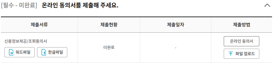 회사 및 대표자 개인의 정보 수집,활용,제공,조회 동의서를 제출하여야 합니다.
