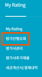 | 로그인한후 상단 메뉴의 My Rating → 평가진행조회 클릭해 주세요. | ![]() |