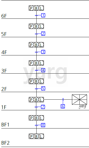 ![]() * 선로의 수는 최소로 하고 발신기공통선 1선, 경종 및 표시등 공통선 1선 * 7경계구역이 초과 시 발신기공통선은 1선 추가 ① ② ③ ④ ⑤ ⑥ ⑦ ⑧ |