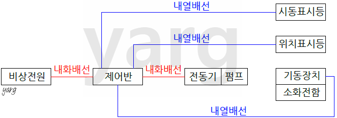 03번 – 옥내소화전설비의 블록선도의 각 구성요소 간에 내화배선, 내열배선, 일반배선 표시하기